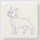 Klassisches Design in Blau-Weiß. Blaue Linienzeichnung einer französischen Bulldoggeauf weißem Untergrund.