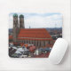 Frauenkirche domkyrka i Munich, den tysklanda olympiska facklan & torn (Olynpiapark) i bakgrunden från de Munich OS:erna som fotograferade av Ashland Thomas.