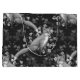 Handmålad utformning av mönster med räv, klockblommor och vivel