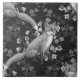 Fräv, klockblommor och vivel, monokrom, silver kakelplatta