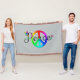 Typografi av regnbåge med fredstecken med fjärilar och virvelströmmar från färg.