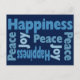 Skicka ordet om Fred,Glädje och Lycka med detta modernt typografi-stilade vykort. Bra vykort för alla dagar på året. Blir en fin bokmärke för bokläsare. Använd som högtidskort för jul,Hanukkah,Chanukah eller Kwanzaa.
