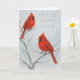 Dela dina julönskningar med denna snöiga röda fågeldesign med orden "fred, hopp, kärlek". Insidan är tom så att du har gott om utrymme att skriva ner dina julhälsningar.