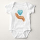 En mjuk illustration och illustration av andlig med ett akvamaringkristallhjärta som vilar försiktigt i en öppen hand. Genom att symbolisera inre fred, känslomässig klarhet och ärliga uttryck framkallar denna design en lugnande kraft. Perfekten för älskare av kristallläkning, feminin energi och minimal bioestetik.