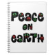 Tur och meningsfull julmålgrafik med röda och grönt accentuerade fredstecken i varje brev. Önskar fred på jorden.. på jul och daglig tid.