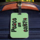 Tur och meningsfull julmålgrafik med röda och grönt accentuerade fredstecken i varje brev. Önskar fred på jorden.. på jul och daglig tid.