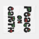 Tur och meningsfull julmålgrafik med röda och grönt accentuerade fredstecken i varje brev. Önskar fred på jorden.. på jul och daglig tid.