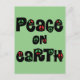 Tur och meningsfull julmålgrafik med röda och grönt accentuerade fredstecken i varje brev. Önskar fred på jorden.. på jul och daglig tid.