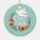 En söt julprydnad med en duva i en blommigt krans med ord Peace on Earth. Juldekoratet är designat i teal, rött och vitt.En elegant helgdag är prydnadsföremål för Julgran.Designad för dig av Blackberry Boulevard.
