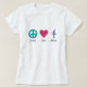 Färgsymboler för "fred" (fredstecken), "kärlek" (hjärta) och "dans" (ballerina) med motsvarande text under.
