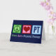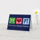 Det här söta fysioterapikortet har ett fredstecken, hjärta och bokstäverna PT för fysioterapi. Jättebra jul- eller högtidskort för ett fysioterapimottagning eller -företag.