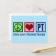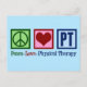 Den här söta fysioterapeut-kortet har en fredstecken, hjärta och bokstäverna PT för fysioterapi. Bra semester- eller julkort för en fysioterapimottagning eller -företag.