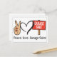 Sött "Fred, Kärlek, Garagesälj" postkort