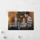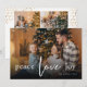 Det här fredliga kärlek glädje julkortet med dubbla sidor har modern typsnittsdesign och en fotokollage på baksidan. Lägg in dina favoritbilder, lägg till en personlig touch med ditt eget hjärtliga meddelande och anpassa det efter dina önskemål. Foton av prostooleh / Freepik.