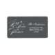 FRED, KÄRLEK, JOY CHRISTMAS HELGDAG ADDRESS-ETIKETT. GRÅTT ELLER GRÅTT BAKGRUND FÄRG. ELEGANT, SKRIPTTECKENSNITT, VIT TEXT MED ORDEN "JOY, KÄRLEK, FREDSSTUDIE" OCH STYLT SNÖFLINGOR. ELKE CLARKE DESIGNS©