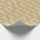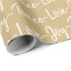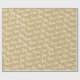 Utformningen på denna julklapp som är papper är ord "Peace-Kärlek-Joy" som upprepas från kant till kant. Texten visas i vit, handskriven kalligrafi på en guld-bakgrund.