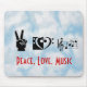 Denna mouspad är färdig med en moln- och himmelbakgrund och den standarda freden, kärlek, musikdesign.
