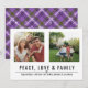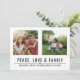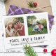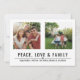Juldkort med fred, kärlek och familj med 2 av dina favoritbilder i modern typografi.