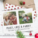 Juldkortet Fred, kärlek & familj har 2 av dina favoritbilder i modern typografi.