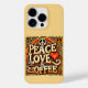 Skydda din iPhone i Groovy stil med den här "Peace, Kärlek, & Coffee"-retro fodral! Med 70-talsininspirerad design med fredstecken, hjärta och ångande kaffe kopp är fodral perfekt för kaffe älskare och fläkt av vintage vibes. Det kommer inte bara att behålla din mobila säker, utan det ger också en unik, nostalgisk beröring till din vardag. ・ Hållbart skydd: Skyddar din iPhone från stötar och repor. ・ Vibrant Retro-design: Lägger till ett popup med färg och personlighet. ・ Enkel åtkomst: Tillåter fullt åtkomst till knappar, portar och kamera. #RetroiPhoneCase #CoffeeVibes #PeaceLoveCoffee #70sStyle #GroovyTech #VintagePhoneCase #CoffeeLovers #zazzlemade