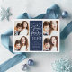Hanukkah-fotokortet som är baserat på den moderna typografin har fyra av dina favoritfoton i fyrkantigt format, med "Peace, Kärlek and Light" centrerat i vit handskriven stil-typografi. Anpassa med din familj namn, ditt enskilda namn och/eller ditt anpassningsbar-meddelande. Kort som går tillbaka till en mönster av vita snö och gult stjärnor på en marin blå bakgrund.