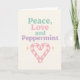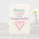 Är du här för pepparmyntan under semestern? Fred, Kärlek och Pepparmynta kan vara designen för dig! Detta kort har den meningen på framsidan, men är tomt på insidan, vilket ger gott om utrymme för alla dina högtidliga önskningar.