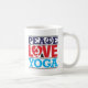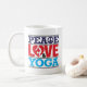 Påstå vad är egentligen viktig till dig med denna mugg som eaturing ord "fred, kärlek och Yoga". Brev "c" i ordfreden ersättas med en fredstecken, fördriver hjärtaanseende in för brev "den förälskade nollan", innehåller en silhouette av en kvinna som gör en yoga, poserar. Tillgängligt med att matcha produkter.