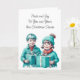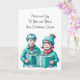 Söt helgdag julkort med vattenfärg. Bekväma små vintagar i gamla teala kläder.