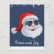 Rolig tomte med solglasögon Fred och glädje Blått högtidskort . Perfekt för den kommande säsongen. Det är bra för dina kunder eller familj och vänner . Önska dem en God Jul.