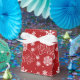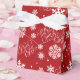 Färd- och glädjetextillustration med vit snöflingor-dekoration på röd bakgrund