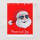 Rolig tomte med solglasögon Fred och glädje Julpostkort . Perfekt för den kommande säsongen. Det är bra för dina kunder eller familj och vänner . Önska dem en God Jul.