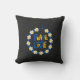 Ett stöd för Ukraina kan man finna med detta utkast från dekorativ kudde som har en modern vit blomsterkrans som har texten "Fred och Kärlek" i blått och gult i Ukraina, flagga i färg i svart bakgrund.