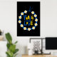 Visa ert stöd för Ukraina med denna moderna utformning av poster som har en vit blomsterkrans med texten "Fred och Kärlek" i blått och gult Ukraina flagga färg i svart bakgrund.