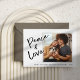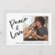 Dessa enkla och moderna svarta och vita julkort har ditt personliga foto, med avslappnad typografi som säger "Fred och Kärlek". En mjuk grå ram accentuerar ditt foto och färglägger baksidan av kortet.