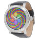 En mycket färgstark design! Det universella tecknet för fred är dödens centrum i denna klocka ansikte, med regnbågar som spirar ut ur den. En blomma i olika färg omger också fredssymbolen. Finns i stilar och färg.
