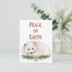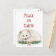 Vackra vykort med helgdag har en korvformad vit arktisk räv med garland och båge och anpassadet "Fred på jorden".