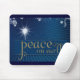Fred på jord i guld skrivar stilsorten mot en blekna mörk - blå himmel med prydnadar och stjärnor. Perfekt design som firar säsongen.