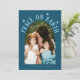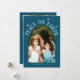 Elegant helgdag-kort med text som säger "fred på jorden" med stjärnor ovanpå ditt bågfoto från ram. Lägg till ytterligare ett foto på baksidan tillsammans med ditt meddelande. Bakgrunden är teal.