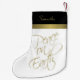 Denna vackra julklapp är både enkel och elegant. Den innehåller frasen "Fred på jorden" skriven i elegantens moderna skript i guld på vit bakgrund. Det finns en mullstuva överst på strumpan som är avskild från kroppen med en remsa av ribban från guld. Det finns ett ställe som ska gå in i namn. Sofistikerat, underskattat och chic sätt att dekorera helgdagarna.
