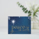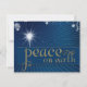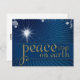 Fred på jorden i guld-skript mot ett tongivande mörk blått himlar med prydnader och stjärnor. Perfektens utformning för att fira säsongen.