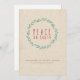 Denna utformning visar ord "Fred på jorden" i rött brev i en grönt krans ovanpå en papper kraftsliknande bakgrund. Anpassa hälsning och namn nedan