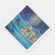 Napkins har en julscen av en stjärna ovanför den lilla staden Betlehem, med ord "Fred på jorden". Färg är blått, mörk blått, orange och guld.