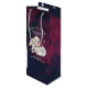 En kristen temad vin-presentväska. Designad med en ljuv ängel med gult vingar som håller en shepherds. Sitta med vita fluffiga lamm. Vattentäthet, blå och burgnyfärgad bakgrund, med små fläckar av faux gnistra glitter (inte glitter bara en tryckt bild). Texten säger: fred på jorden och god vilja mot alla. God jul från<name>.