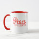 Skicka ett positivt budskap och hopp när du ge den här "fred på jorden"-julen i Helgdag som en X-mas-gåva eller Hanukkah-gåva i år. Den här presenten mugg för jul har ett modernt och trendig-skript Tex i ett glatt rött färg. Perfekt som gåva till en älskad eller vän.