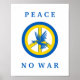 Blå och gult fredssymbol och text "Peace - NO WAR"