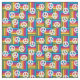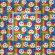 Den här väven har en design av kvadrater av rektanglar i ljust färg på 1970-talet med fredstecken som är spridda runt den.