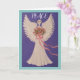Originaldesign för ett julkort med en stiliserad ängel på framsidan och en känsla på insidan.