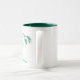 15.oz muggen, krickagrönt på insidan, med en fredduva på sidan och "ber skriftligt under för för fred" det.