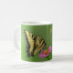 Mugg har en vacker fjärilsäck som samlar nektar från en rosa zinkblomma. Budskapet påminner oss om att vi fortfarande är och lyssnar på vägledning.