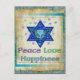 Hearts, David stjärna och ord "Peace Kärlek Happiness" är ett vackert sätt att säga Lycklig Hanukkah.